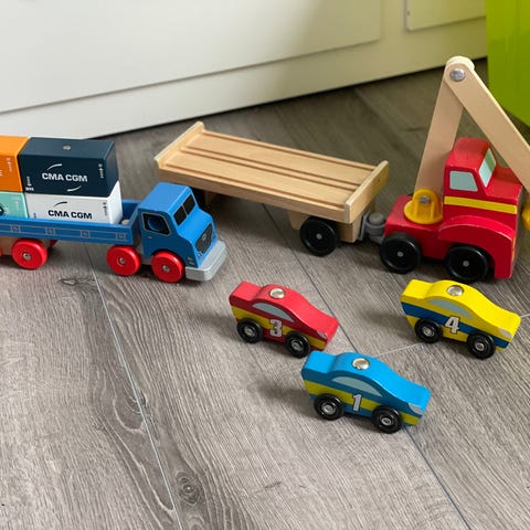 Passer fint til lek alene eller sammen med togbane, for eksempel BRIO-bane.