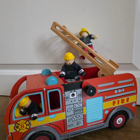 Le Toy Van redningskjøretøy i tre – politi, brannbil og helikopter – 100 kr