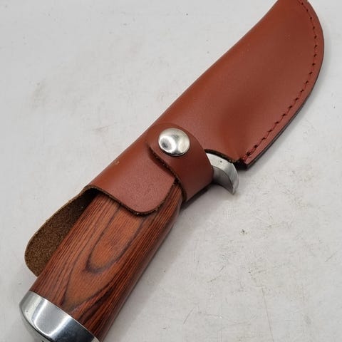 Kniven leveres med slire og kan bæres i beltet.