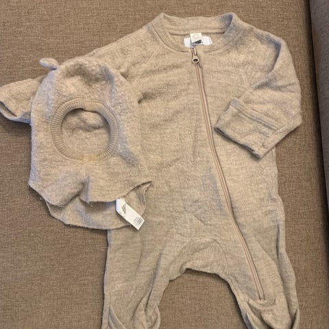 H&M heldress i fleece i grå farge, størrelse 74, unisex.