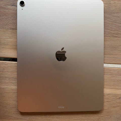 Pent brukt iPad Air 2025 stellargrå vurderes solgt. Selges grunnet lite bruk. Den er i nesten ny stand, ingen riper eller skader i hverken skjerm eller body. Brukt deksel og skjermbeskytter fra første dag. Ingen feil eller mangler. Fortsatt 100% batterikapasitet. Enda gjenværende garanti på denne. Kun meg som eier, kvittering og orginal eske, samt ubrukt original lader følger med.
