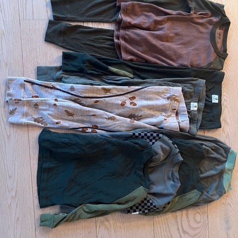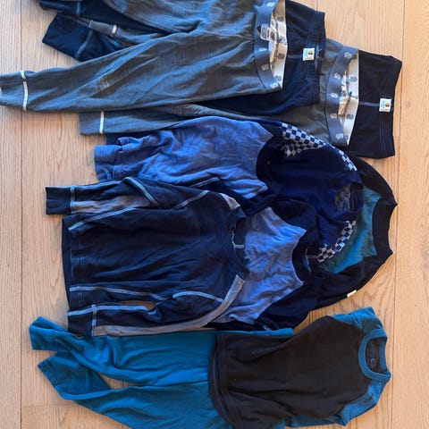 Selger en fin klespakke med ull, bambus og fleece. Perfekt til barnehage eller hverdagsbruk. Flere plagg er lite brukt.
