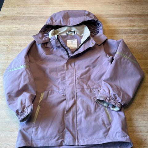 Pent brukt jakke i str 134 (8-9 år). Avtagbar hette. Refleksdetaljer.