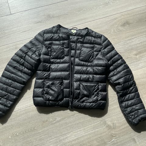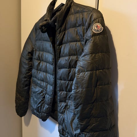 Moncler dunjakke for dame i størrelse 0. Jakken er svart og fylt med dun. Lett, vattert modell med horisontale sømmer og ståkrage. Lukkes med glidelås foran og har sidelommer. Passer som lett ytterjakke i overgangssesonger eller milde vinterdager.