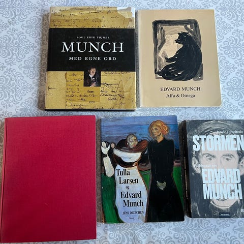 * Kunstbok om Edvard Munch med tittelen «Edvard Munch 1863–1944» av Ulrich Bischoff. Boken inneholder tekst og bildegjengivelser av kunstverk, blant annet malerier, og gir en gjennomgang av kunstnerens liv og virke i denne perioden. heftet utgave med illustrasjoner i farger og tekstsider med kunsthistorisk innhold. Utgitt av Taschen i 1988, 96 sider.