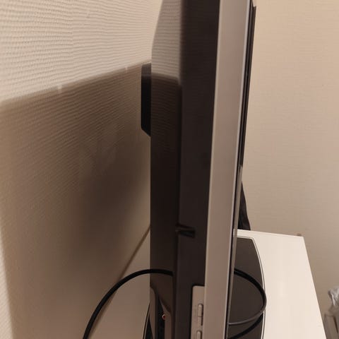 Samsung TV. Flat skjerm med bordstativ. Leveres med fjernkontroll slik det fremgår av bildene. Egnet som vanlig TV eller som skjerm til for eksempel dekoder eller annet eksternt utstyr via tilgjengelige tilkoblinger på baksiden. Nærmere tekniske spesifikasjoner som modellbetegnelse, skjermstørrelse og oppløsning fremgår av etiketten på baksiden av apparatet.