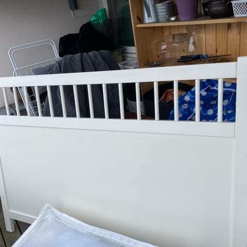 Brukt sengegavel gis bort. Farge: grå.