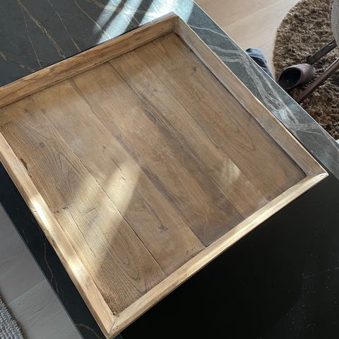 Et dekorativt brett som passer fint til servering av kaffe og kaker, eller som en koselig detalj på bordet med lys, blomster eller frukt.
