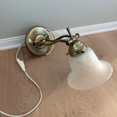 vegglampe, vintage lampe, retro lampe, nattbordslampe, sengelampe, glasslampe, blå glasskjerm, messing lampe, retro belysning, interiør lampe
