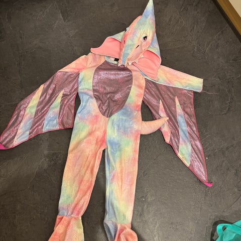 Søkeord: dinosaurkostyme, dinosaurdrakt, pterodactyl, karneval, halloween, utskledningsklær, barnekostyme, smiffys, bursdag, lek, unisex kostyme, grønn dinosaur, flyveøgle.