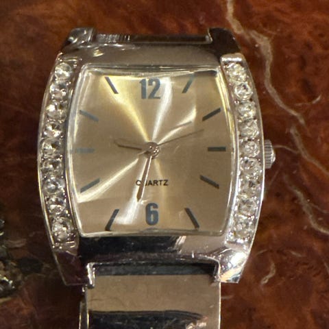 Fin dameklokke i stål ikke brukt mangler batteri bredde på lenke 2 cm lengde på klokka med lenke er 22cm