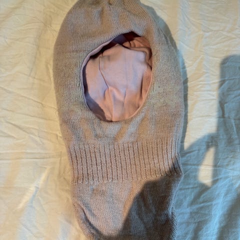 Vil beskrive fargen so gammelrosa / mauve. Kjøpt ny av oss i 2023 hos Barnas hus. Vindstopper foran ørene og kan brukes lenge