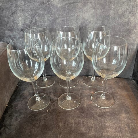 IKEA STORSINT vinglass 32 cl i klart glass, 6-pack. Glassene er designet av Aaron Probyn og rommer 32 cl (11 oz). Klassisk form med stett, egnet til servering av vin og andre kalde drikker. Leveres i original eske med seks separate rom for hvert glass.