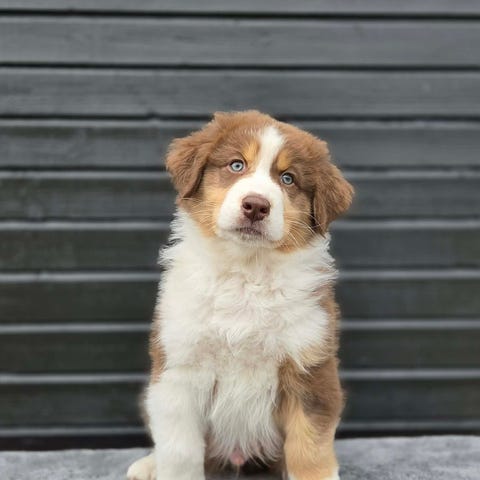 Veldig flott hann-valp, snill og kosete. Stuerent og går fint i bånd.