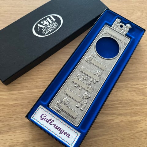 Mayfield Burns Supper whiskykaraffel og glass i gaveeske. Sett i treetui med polstret innside. Inneholder en firkantet karaffel og flere matchende whiskyglass i klart glass med inngravert Mayfield‑motiv og tekst. Egnet til servering og oppbevaring av whisky eller andre brennevin, samt som samler- eller minneobjekt knyttet til Burns Supper-arrangementet 29. januar 2007.