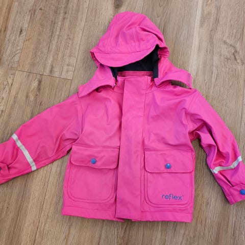 Regnjakke er fra Reflex, str. 86 og er helt inntakt og fin i stand. Selges for 100,-.