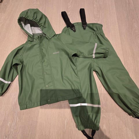 Regnbukse er fra name it og i str. 80, og er fin, men har et lite kutt bak som er lappet, og den ene stroppen på bene er røket. Må evt byttes ut. Eller funger buksen helt fint. Selges for 50,-.