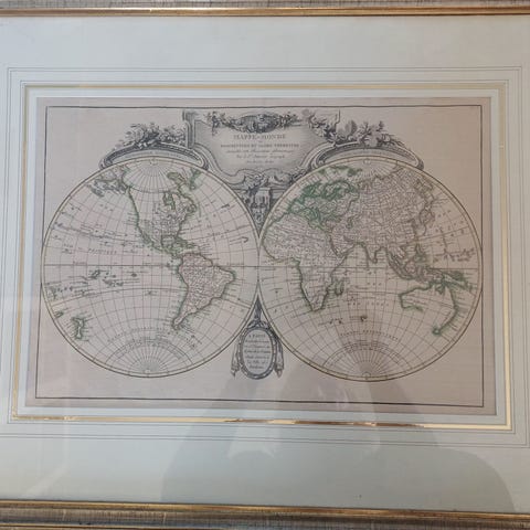 Bilde/plakat/trykk av gammelt kart. H 46 cm B 58 cm