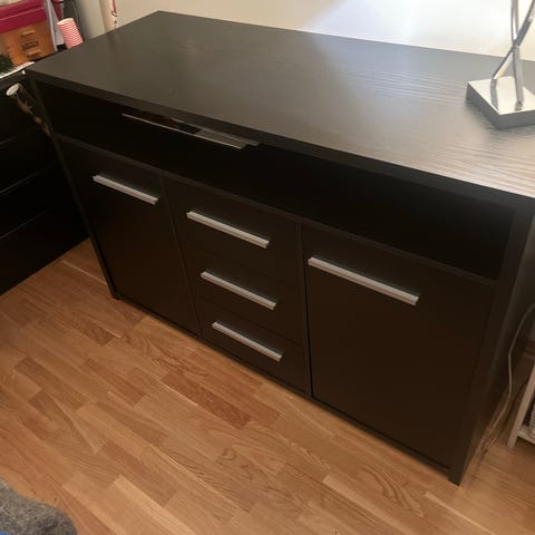 Les mer her https://www.clasohlson.com/no/Lav-hylle-i-metall-med-skuffer-i-tekstil,-svart/p/44-5373