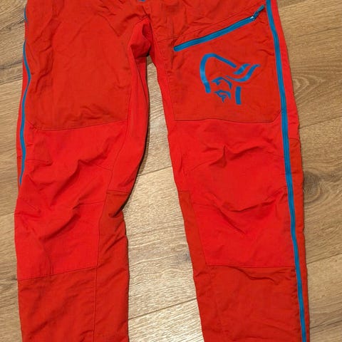 Norrøna Fjørå bukser for dame i størrelse M. Buksen er rød med kontrastdetaljer og stor Norrøna-logo på låret. Materiale i polyamid. Modellen har flere glidelåslommer foran og justering i livet med borrelås. Egnet som funksjonell fritids- eller turbukse for dame. Kjempe flott tur bukse som er knapt brukt. Ingen feil eller mangler på buksen.