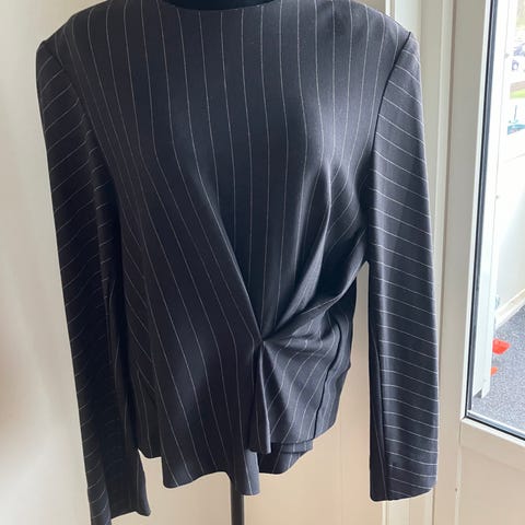 Elegant og stilren bluse fra COS i en vakker mørkegrønn farge. Blusen har et moderne snitt med en litt asymmetrisk form nederst og glidelås bak.