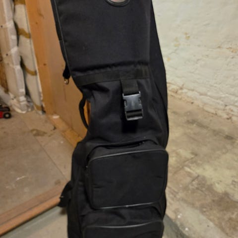 Golf reisebag i svart farge. Baggen har hjul og håndtak for enkel transport av golfutstyr. Egnet for oppbevaring og frakt av golfbag og køller, for eksempel på reise eller mellom hjem og golfbane.