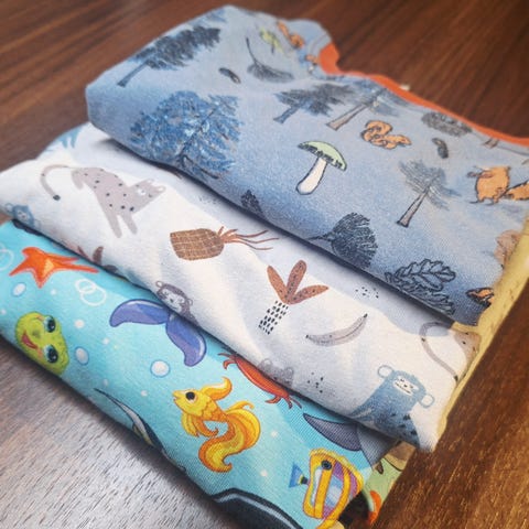 Polarn O. Pyret barn 2 sett med pysjamas i bomull, unisex, i størrelse 98-104. Settet består av genser og bukse med flerfarget dyre- og husmønster. Plaggene har myk bomullskvalitet som egner seg til hverdagsbruk. Genseren har lange ermer og rund hals, og buksen har smal passform med helprint i samme mønster som genseren. Passer til barn som bruker størrelse 98 i unisex barneklær.