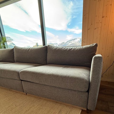 Kjempefin sofa av god kvalitet som har holdt seg veldig bra. Sofaen er er pent brukt og sofaputene har god fasong. Farge lys grå.
