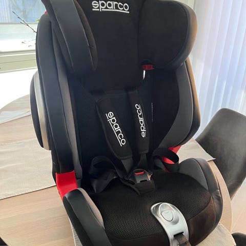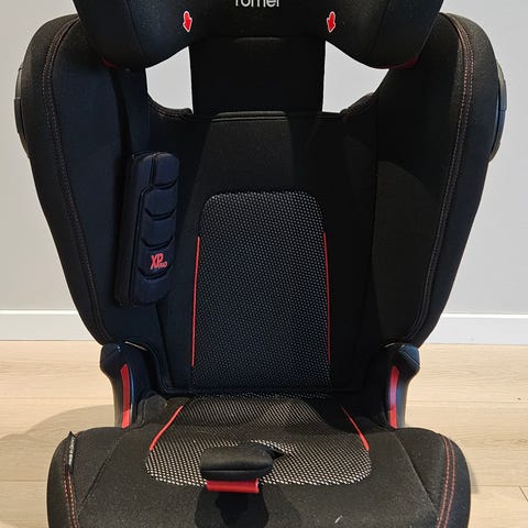 Selger denne pent brukte stolen, her festes stolen med bilens belte. (Ikke isofix)