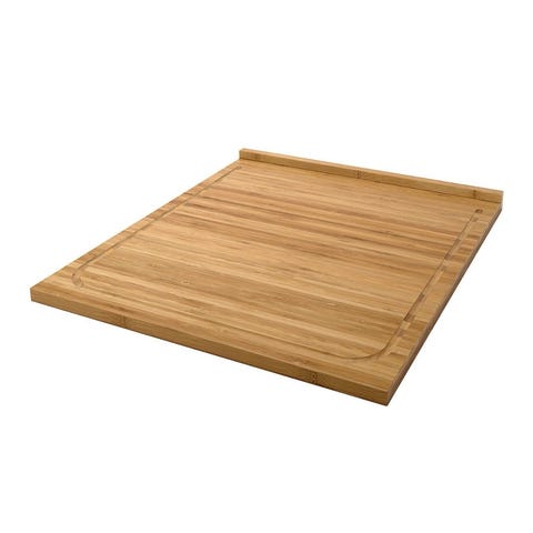 IKEA skjærefjøl i bambus. Skjærefjølen har opphøyd kant på én side og spor langs kanten for å samle opp væske. Egnet som arbeidsplateforlenger eller som vanlig skjærefjøl til matlaging på kjøkkenet. Laget av bambus, som gir en hard og slitesterk overflate. Brukt 2-3 ganger