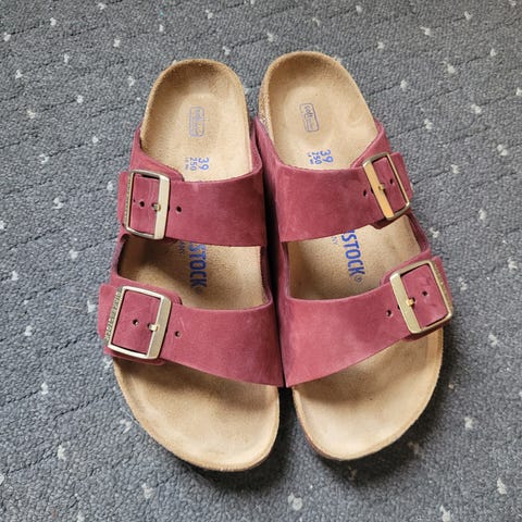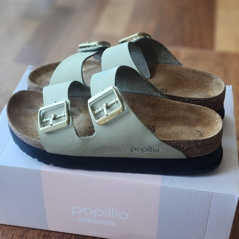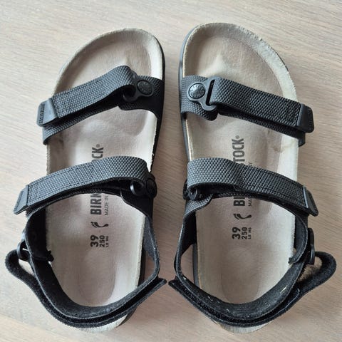 Birkenstock er de ikke fra men norskproduserte Sandaler fra Basisfot størrelse 39 i skinn med støtdempende såle, foretrukket av helsepersonell. Ubrukte, kjøpt for store
