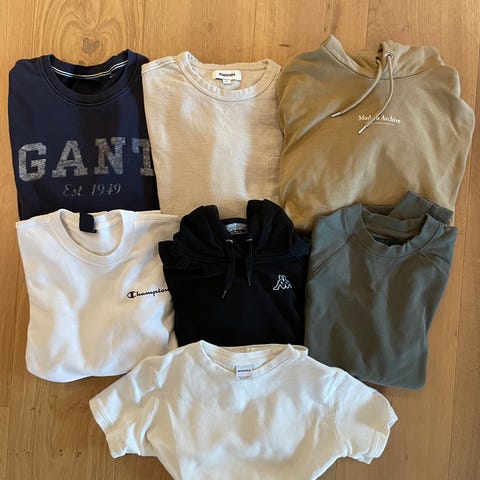 Det som ikke er solgt er fra første bilde og ut A til Å: *Les Duex beige, Holzweiler grå og svart, grå hettegenser