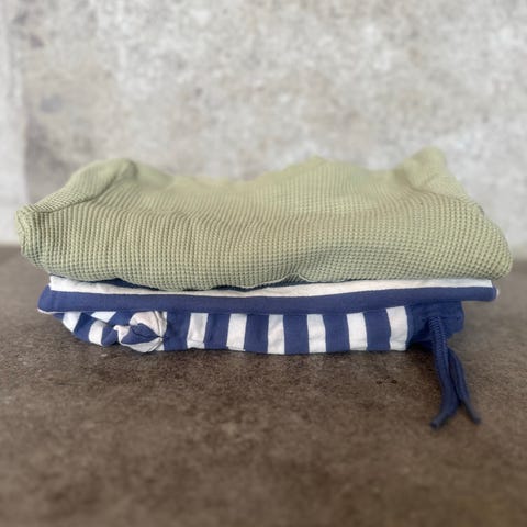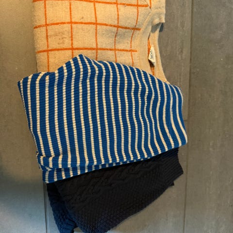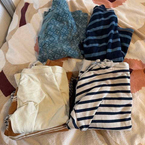 Polarn O. Pyret 2 barn pysjamas sett i bomull, unisex, størrelse 98-104. Settet består av overdel og underdel med glidelås og mansjetter. Design med flerfarget mønster, blant annet klassiske striper og kartmotiv. Mykt bomullsmateriale som egner seg til bruk som nattøy eller kosedress inne.