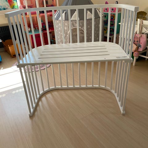 Alt tilbehør er fra babybays eget merke unntatt ene laken og sengerand