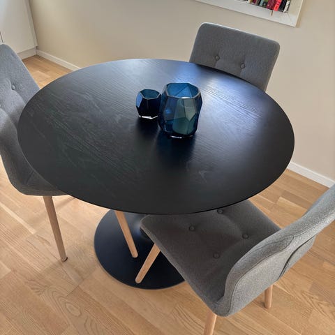 Rundt bord med innleggsplate selges da vi trenger et mindre bord.