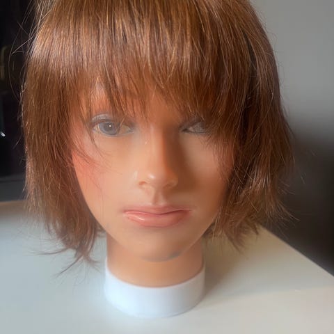 Stilig brun bob parykk med naturlig front lace. Laget av varmebestandig syntetisk fiber (high temperature fiber). Komfortabel helhetlig parykk som gir et naturlig og elegant utseende. Helt NY!!