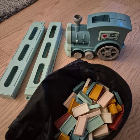Dominotog, brukt få ganger. Leke til barn.