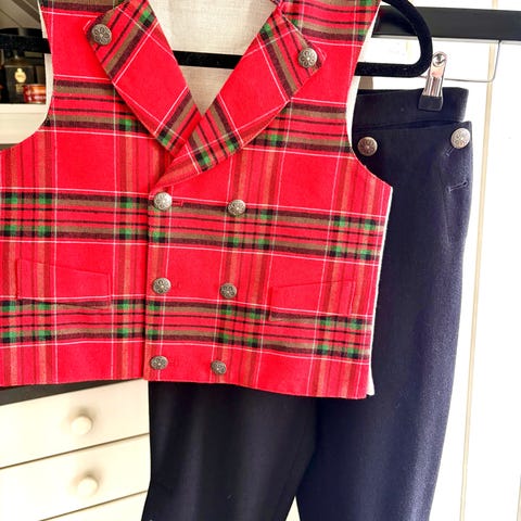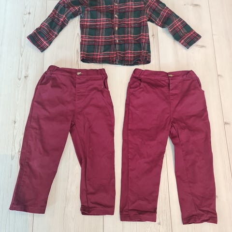 Har I tillegg to juleskjorter i en annen annonse i str. 110/116 som vi har brukt som juleantrekk sammen med denne røde vesten og buksa i denne annonsen hvis det er aktuelt så gjerne ta en titt.