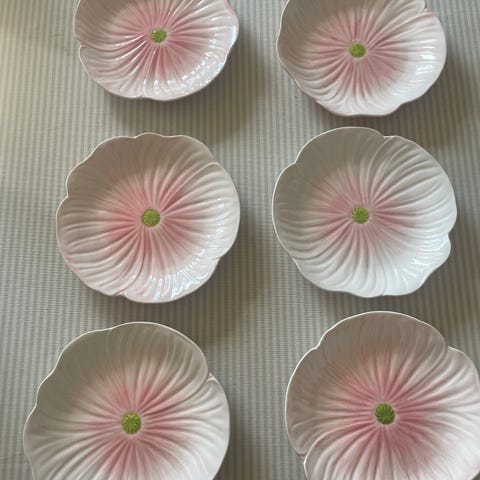 Åhléns Home asjetter i blomsterformet design i glasert keramikk.