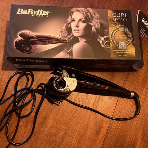 BaByliss Curl Secret krølltang i svart. Elektrisk krølltang med ledning og utskiftbar krøllkammer-del, egnet for styling av hår med automatiske krøller. Flere knapper på håndtaket gir mulighet for å justere innstillinger som varme og tid, avhengig av ønsket resultat. Passer til bruk hjemme for å lage bølger eller krøller i håret.