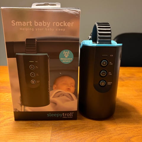 Selger en sleepytroll baby rocker barnevognvugge med lader. Fungerer som den skal, og har vært gull verdt for å få baby til å sove litt ekstra.