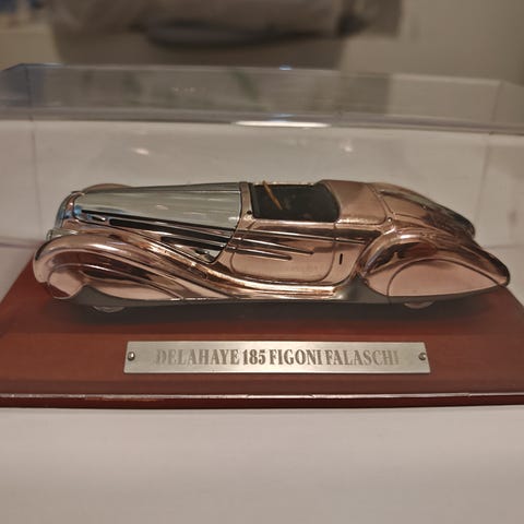 Pen miniatyrmodell av en McLaren SLR på tresokkel