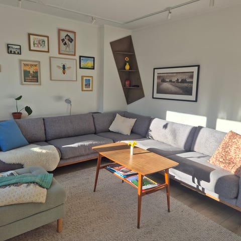 pen hjørnesofa i kordfløyel. nypris 40000,-