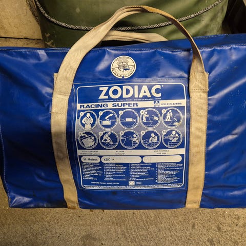 Redningsflåte kjøpt i 2009 selges til noen som kan ta service på denne. Den har ligget i lukket rom på 45-fots seilbåt siden den var ny og har ikke blitt brukt eller hatt service på. Må hentes.