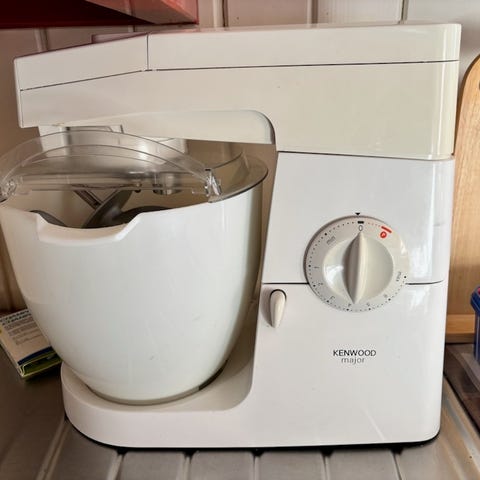 Kjøkkenmaskinen fungerer som den skal. Kjøperen må komme og hente selv. Følger ikke med extra utstyr (har mistet de). Ellers er det helt nytt. Har ikke synlig merker.
