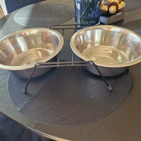 2 hundeskåler i stativ 21x45 selges