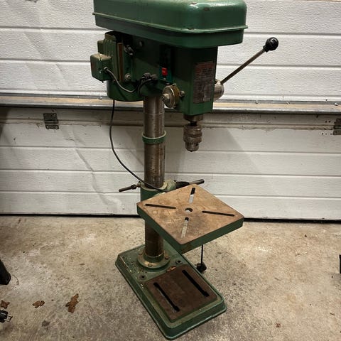SIP søyleboremaskin for boring i metall og andre harde materialer. Maskinen står på søyle med fastmontert fotplate og justerbart bord. Hastigheter og funksjoner styres fra frontpanelet. Egnet for verksted, garasje eller hobbybruk der det er behov for nøyaktig boring i ulike materialer.