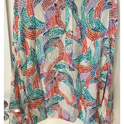 Fin bluse fra b young, str40, rysjer og knytting i halsen, Nydelig print.