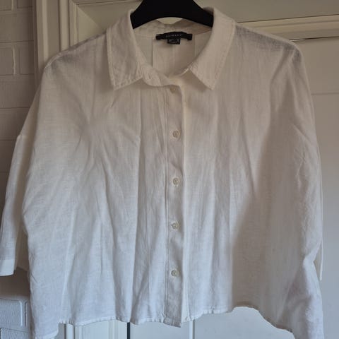 Fin hvit skjorte fra Pieces. Det står str M, men opplever den mer som en str. S. 100 % bomull.