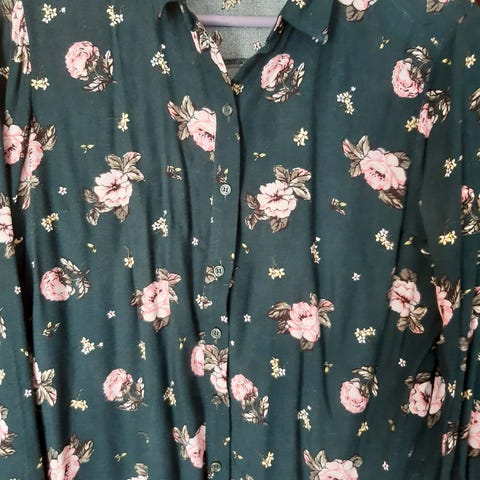 Skjorte i bomull fra H&M. Mønster med grønne blader. Bomull. Str m.